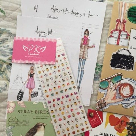 Eso es todo lo que envié. Stickers que imprimí, algo de papelería. Unos washi tape samples de washi tapes que compré en mi día de shopping. De regalo le envié una postal, una tarjeta y unos stickers.