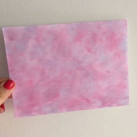Este es otro sobre que hice con la misma técnica de la esponja y las tintas, pero en otro tono. Así es como se ve en casa.