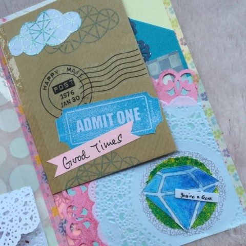 Amo esas cosillas con bling bling. Son del set pequeño de die cuts que venden en la Lápiz López. Maravillosa librería que hará que todos mis swaps sean soñados de ahora en adelante.