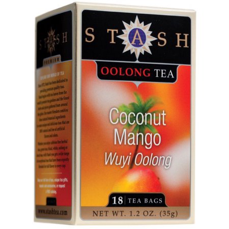 Me encanta el té oolong, o té azul como se le dice también. Me gusta porque es menos amargo que el té negro, así que es de aquellos tés que puedes dejar un buen rato en la taza sin problemas (yo generalmente remojo mi bolsita de té como 20 segundos, no me gusta muy cargado). El sabor de este té además de ser suave, es maravilloso, además me encanta la combinación coco/mango.